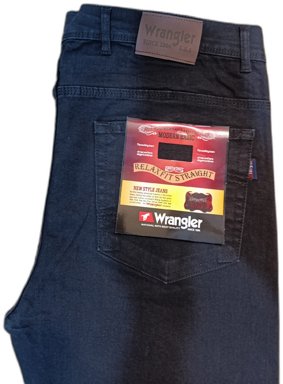 شلوار جین رنگلر مدل راسته با رنگ مشکی مناسب استفاده روزمره و تولید شده در ایران ،در دوخت شلوار از نخ همرنگ پارچه استفاده شده که جلوه ای هماهنگ و ساده به شلوار بخشیده است.
